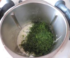 5. Přidám nasekaný kopr a míchám 2min/80°C/R3 a víčkem přileji 1 PL octa